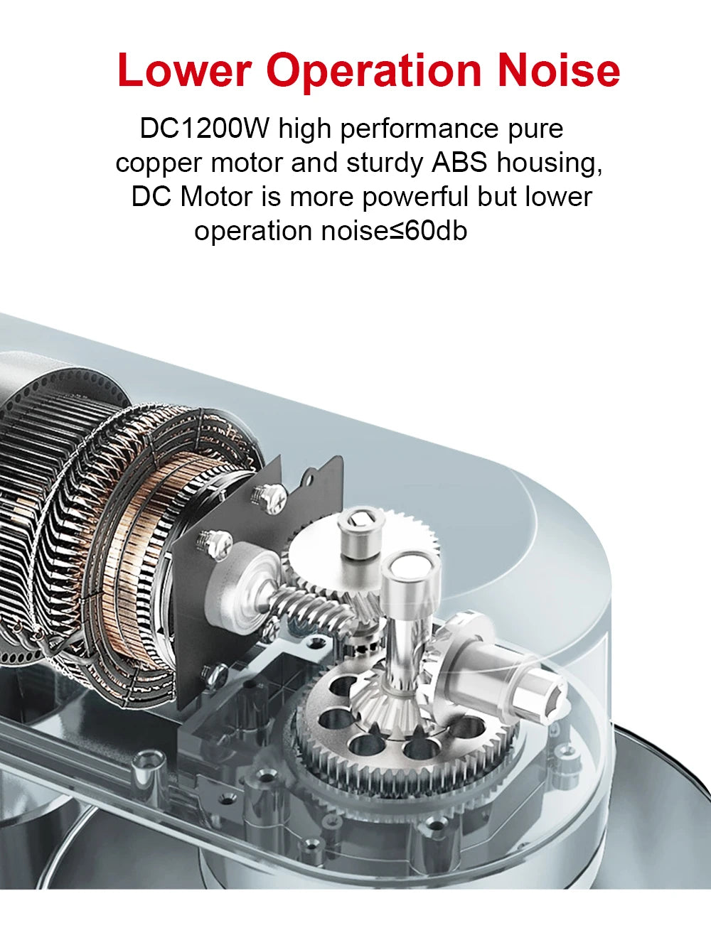 Moteur CC puissant de 1 200 W et contrôle précis de la vitesse de 6 + P : le batteur sur socle BioloMix 6 L utilise un moteur silencieux à courant continu en cuivre pur haut de gamme maximum de 1 200 W avec une efficacité de fonctionnement élevée, équipé de capteurs à effet Hall et de réglages d'impulsion supplémentaires.6 vitesses optimisées avec fonction minuterie pétrissent facilement les pâtes, les pâtes épaisses, les meringues et la crème fouettée.