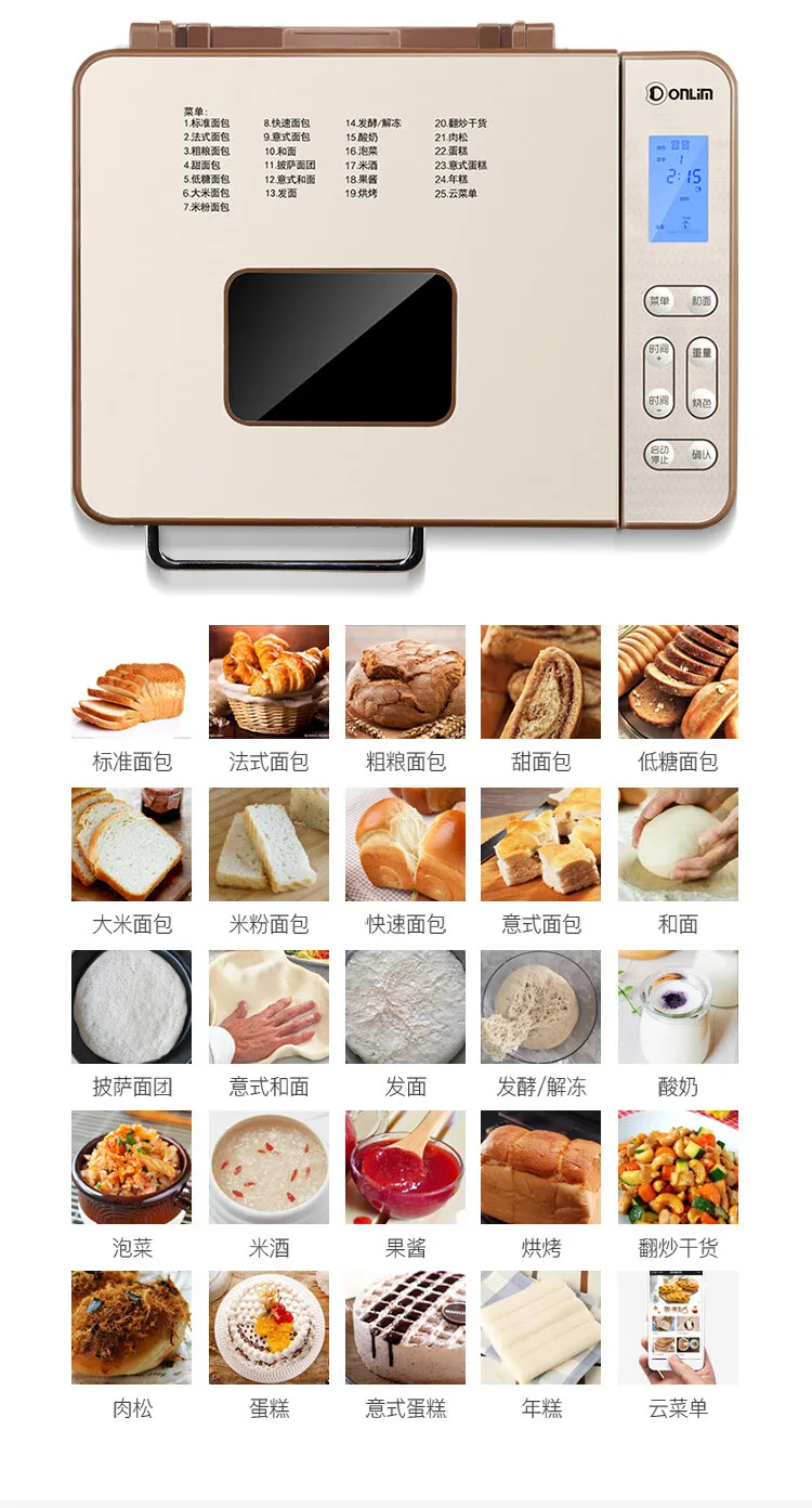 - Machine à pain Donlim, machine à pétrir la pâte entièrement automatique et domestique, machine à pétrir domestique, machine intelligente d'arrosage et de grillage des fruits DL-TM018 sur réservation