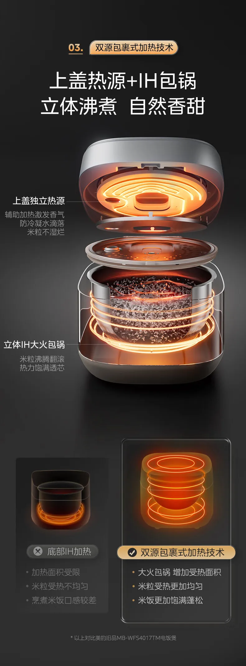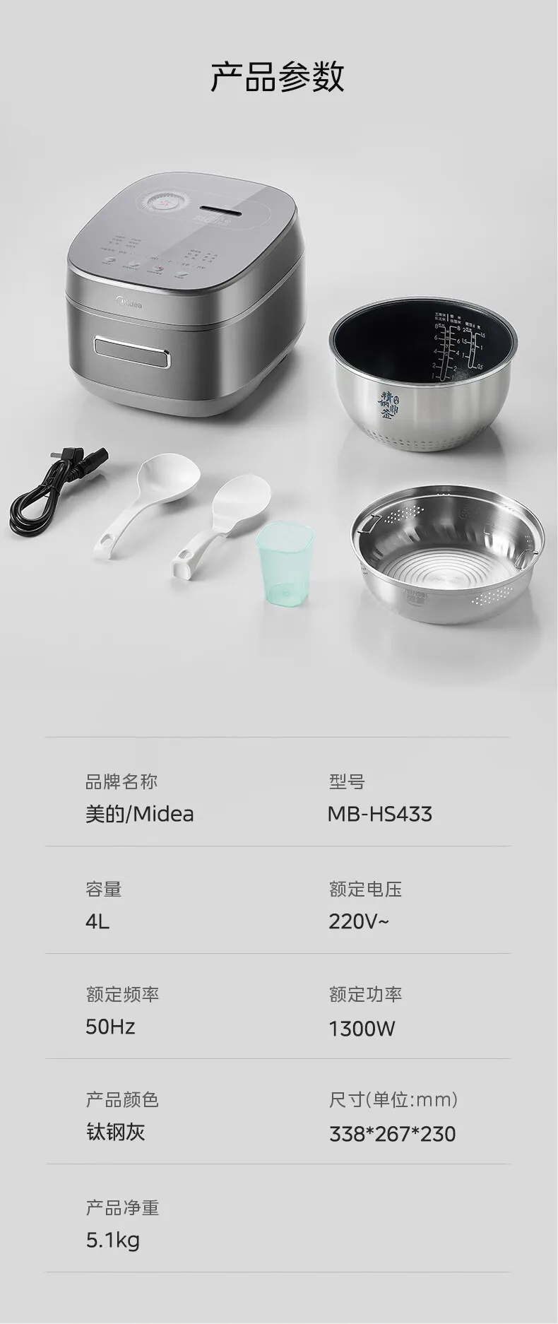 - Midea Cuiseur à Riz 4L Stéréoscopique IH Chauffage Électromagnétique Un Bouton Double Couche Cuisson Rapide Maison Smart Cuiseur à Riz MB-HS433 (3-8 Personnes)
